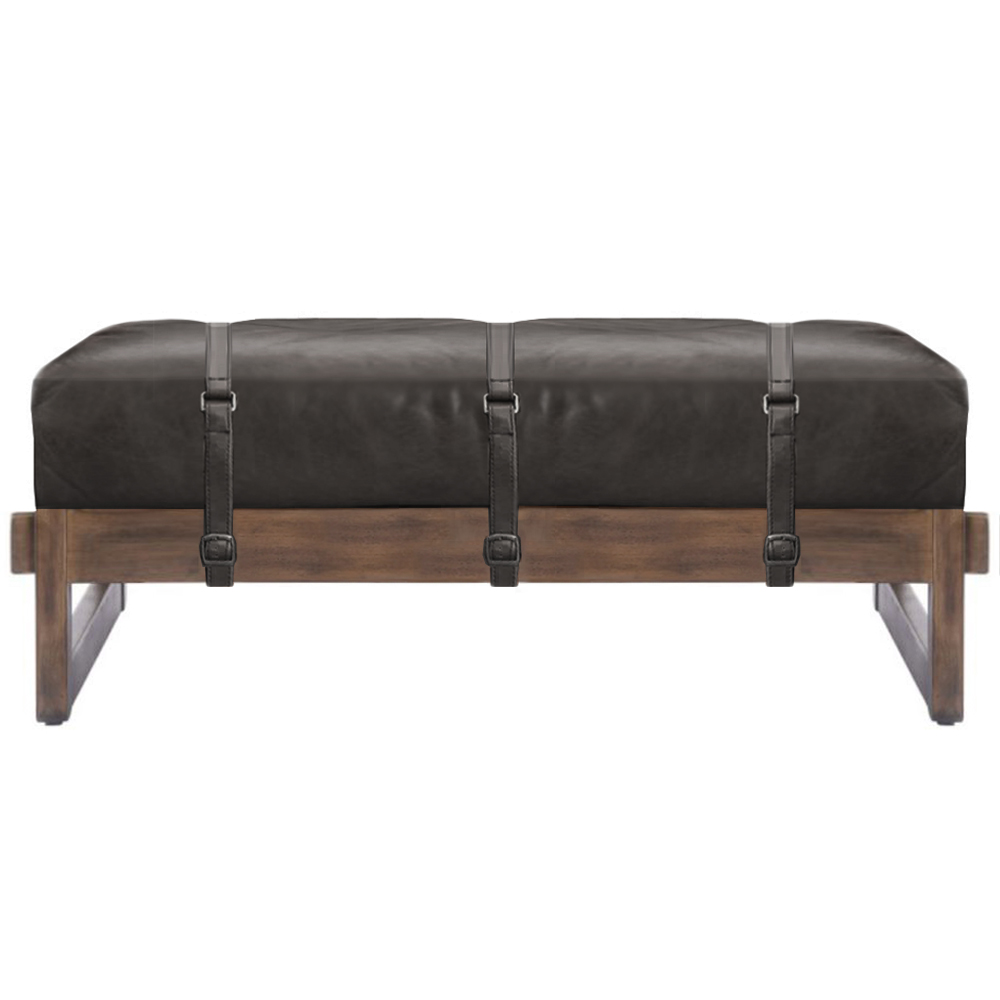 Банкетка Duncan винтажная черная кожа Черный Коричневый в Волгограде | Loft Concept