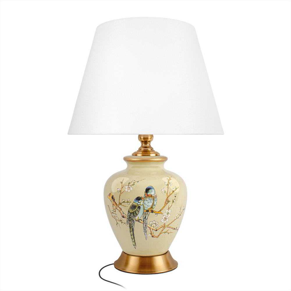 Настольная лампа бежевая с изображением птиц Slip Away Белый Бежевый Мульти в Волгограде | Loft Concept
