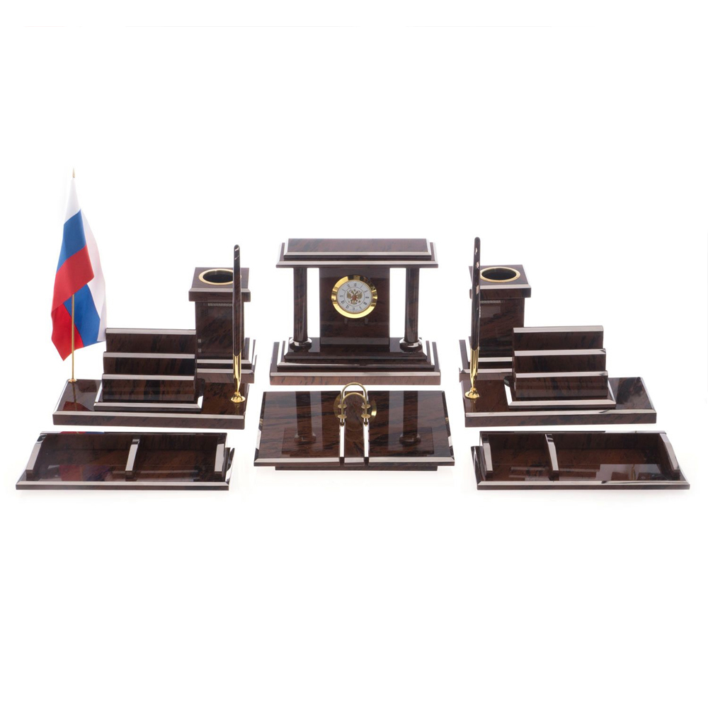 Настольный письменный набор из природного камня обсидиана Team leader Коричневый Бронза в Волгограде | Loft Concept