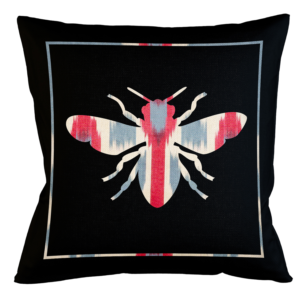Подушка декоративная пчела с узором красного и серого цвета Ikat Pattern Синий Бежевый Черный Зеленый в Волгограде | Loft Concept