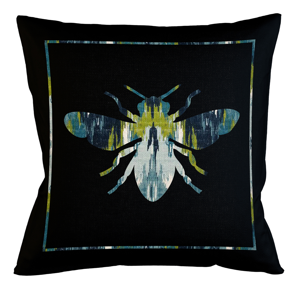 Подушка декоративная пчела сине-зеленый узор Ikat Pattern