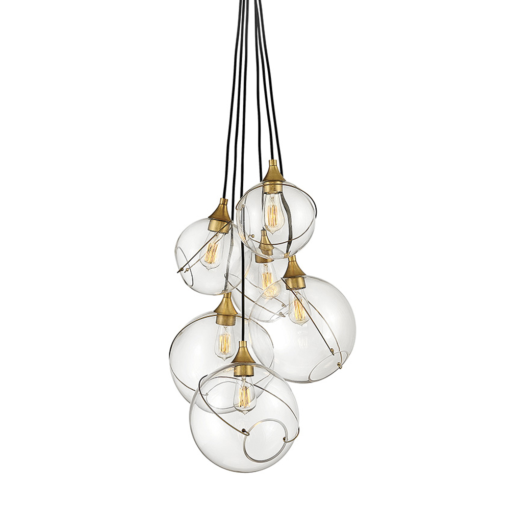 Подвесной светильник с шестью прозрачными стеклянными шарообразными плафонами Hinkley Латунь Прозрачное Стекло в Волгограде | Loft Concept