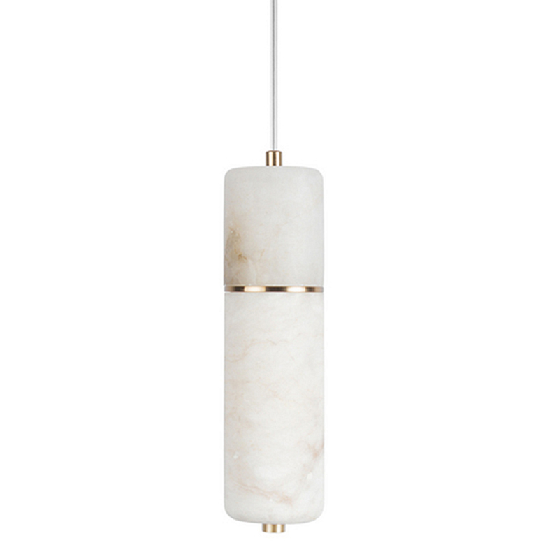 Подвесной светильник с цилиндрическим плафоном из белого алебастра Cryptocrystalline Stone