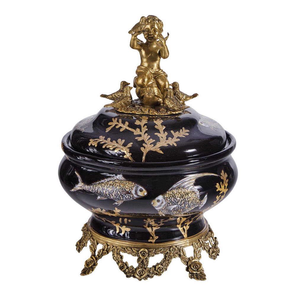 Шкатулка черного цвета с бронзовым ангелом Eden Garden