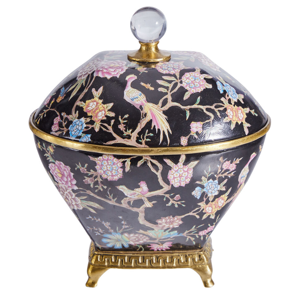 Шкатулка черного цвета с цветочной росписью Eden Garden Черный Бронза Мульти в Волгограде | Loft Concept